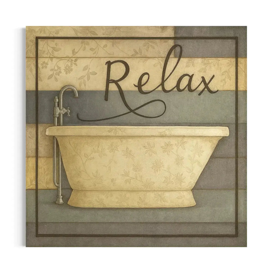 Bring spa-calm to your space with this vintage bathtub wall art canvas. A classic claw-foot tub, soft florals, and the script “Relax” create a soothing focal point that suits powder rooms, guest baths, and serene en-suites. Printed with fade-resistant inks on premium, gallery-wrapped canvas, it arrives ready to hang with crisp edges and a clean profile. If you’re styling tranquil bathroom wall art, this neutral palette pairs effortlessly with marble, brass, matte-black fixtures, or natural wood accents.